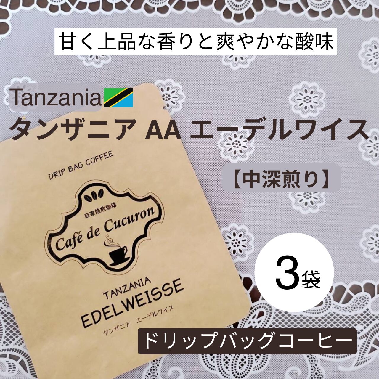 ドリップバッグコーヒー タンザニア AA エーデルワイス 3袋